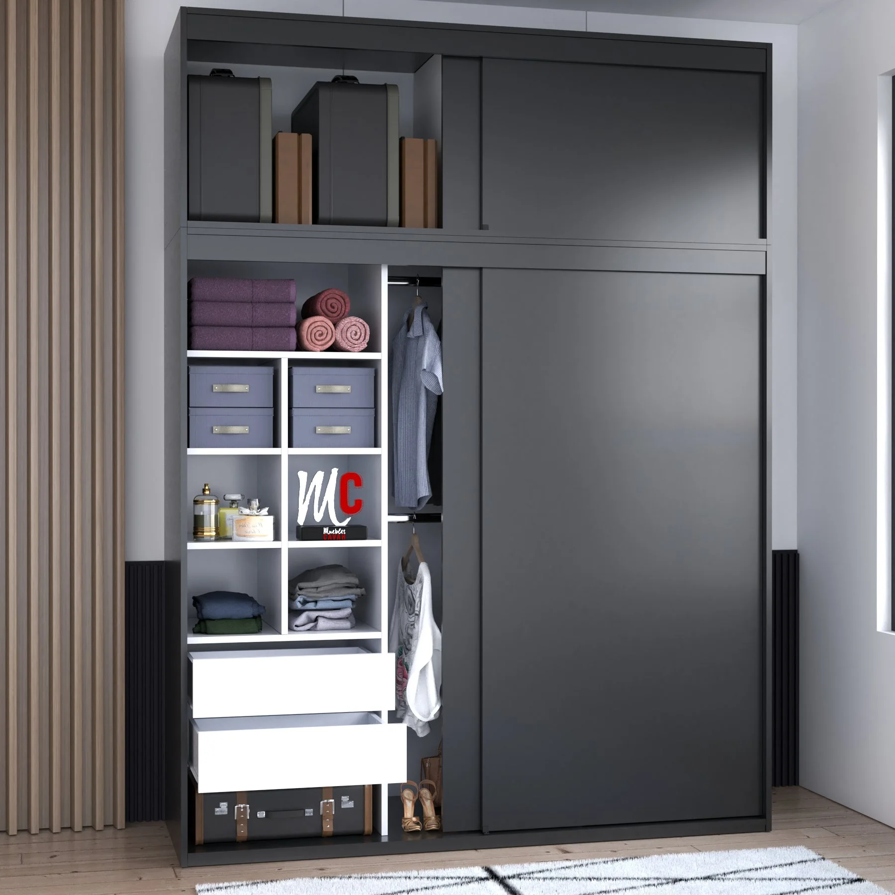 | Color | Blanco, Roble, Wengue, Negro, Textil gris |