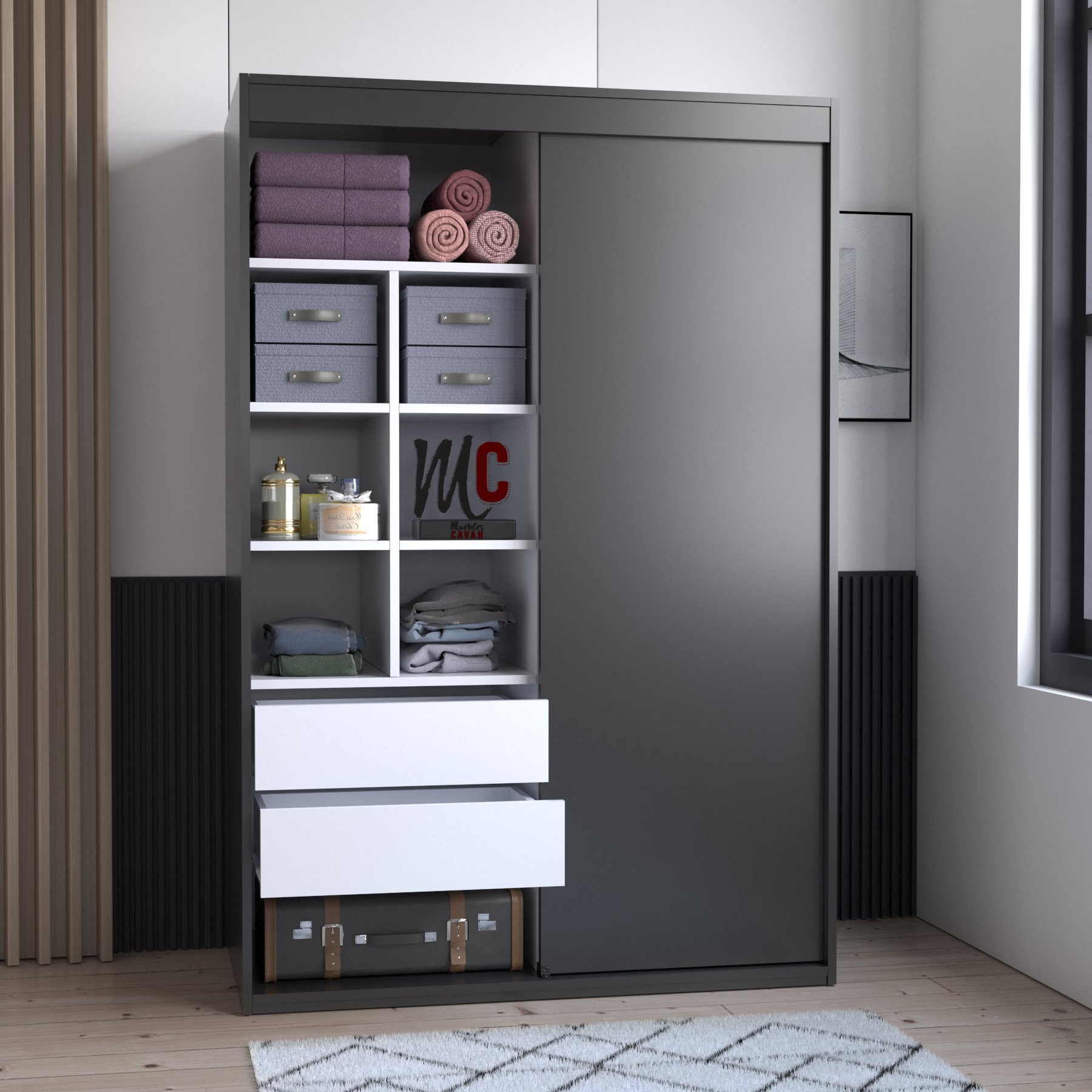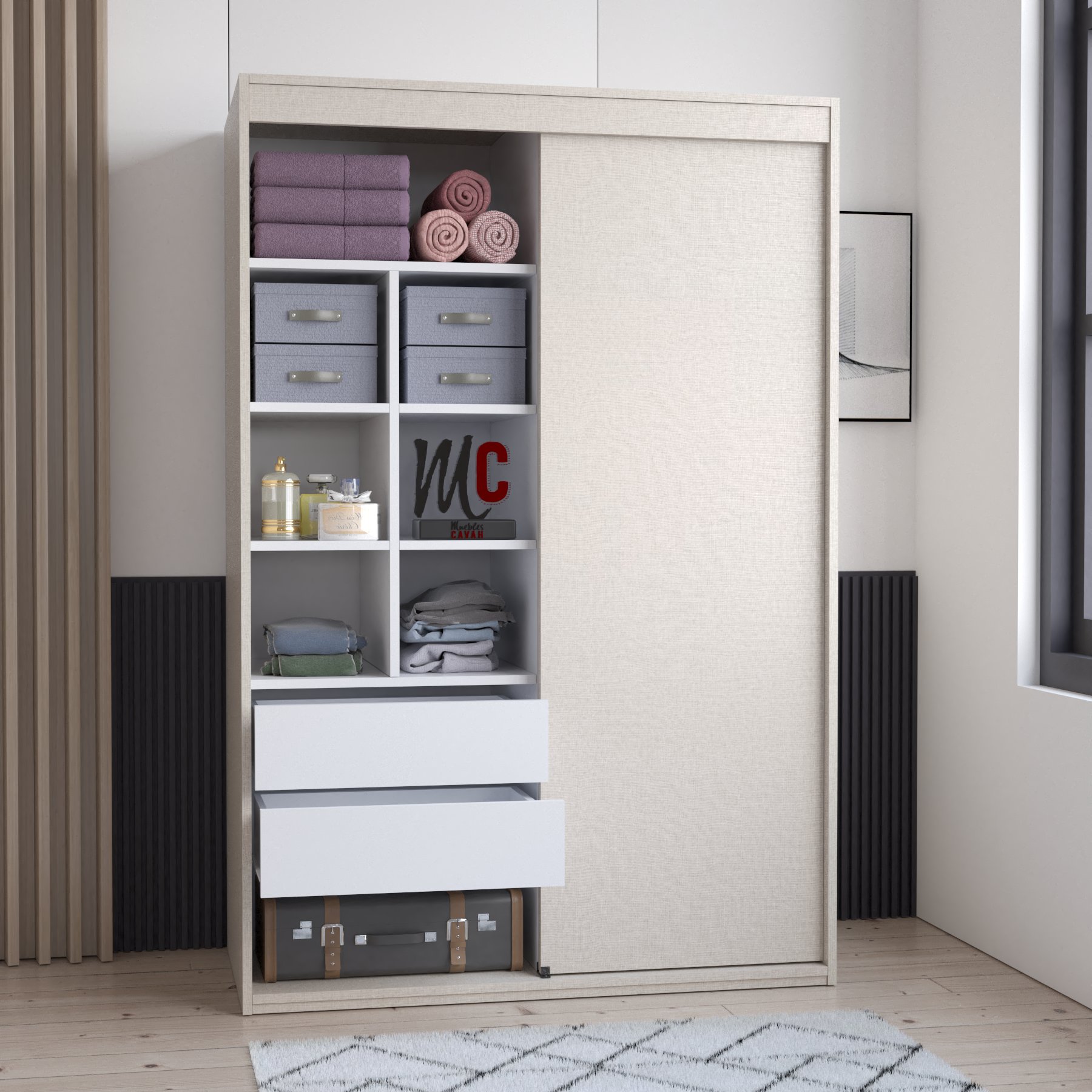 | Color | Blanco, Roble, Wengue, Negro, Textil gris |
